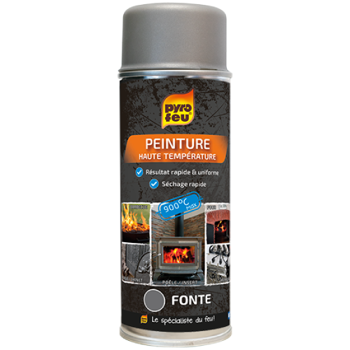 Bombe de peinture en aérosol 400ml couleur fonte haute température pour foyers, inserts, barbecues, poêles, plaques, grilles, chenets.