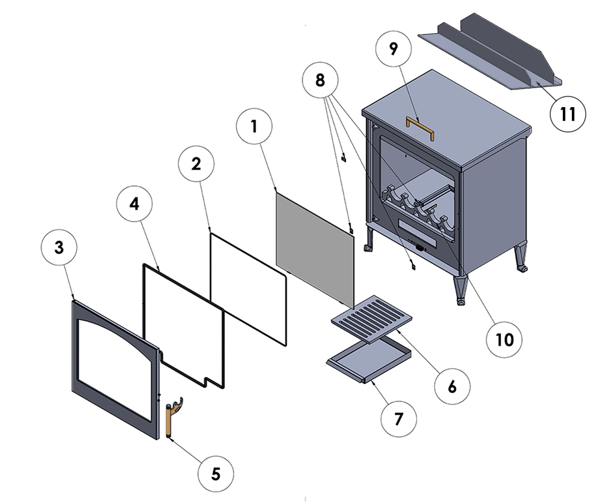 Poêle Castilla (Version 457mm) – Vitre Façade – Panadero – 382x457x4mm