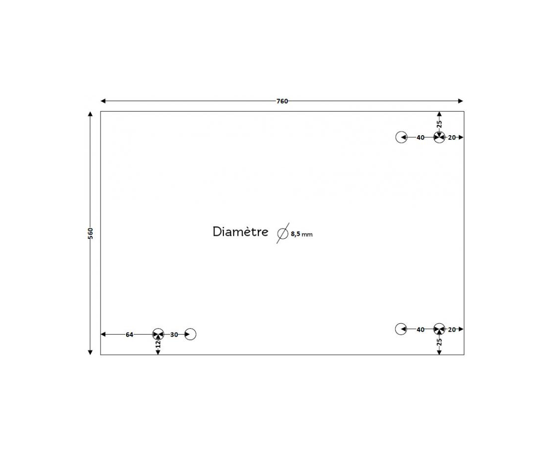 Vitre rectangulaire percée haute température, bords chanfreinés, certifiée conforme. Brisach.