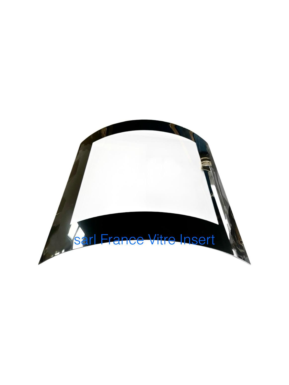 Vitre galbée sérigraphiée haute température, certifiée conforme.