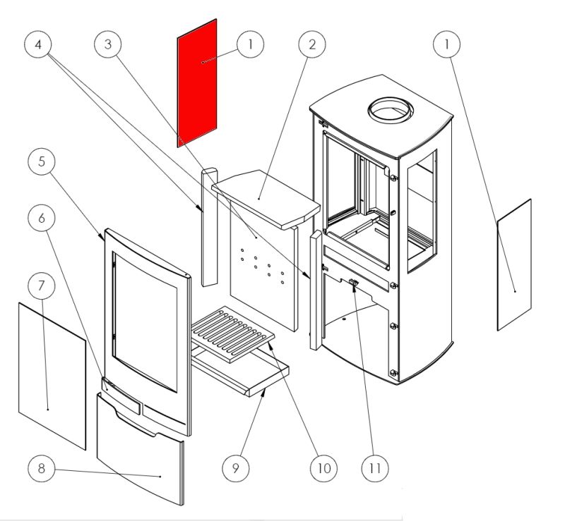 Poêle Zinc – Vitre Latérale – Panadero – 184x485x4mm